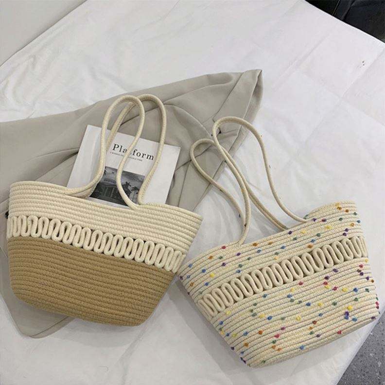 Hot Sale Women's Large Capacity Straw Bucket Beach Tote Bag Custom Summer Basket with Open Closure Durable Portable