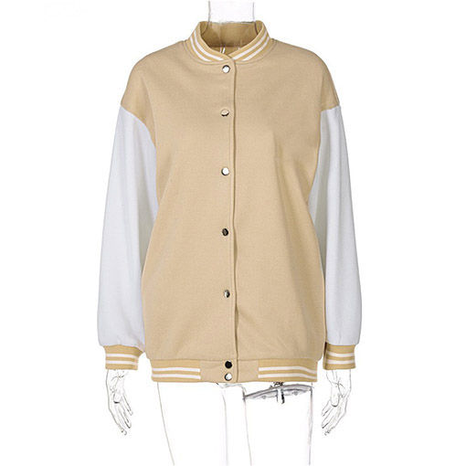 Hot Sale Women's Long Winter Coat Genuine Wool Varsity Jacket Leather Sleeves Breathable Washed Technics Button for Spring