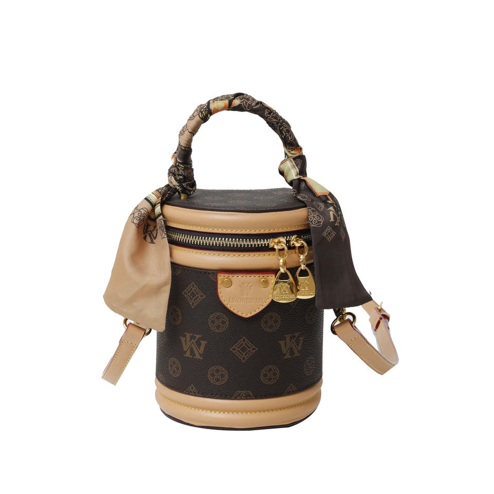 Hot Sale Women's Wealth Bucket Tote Bag 2025 Fashionable Handheld Cylinder PU Large Capacity Vintage Printed Multi-purpose Daily