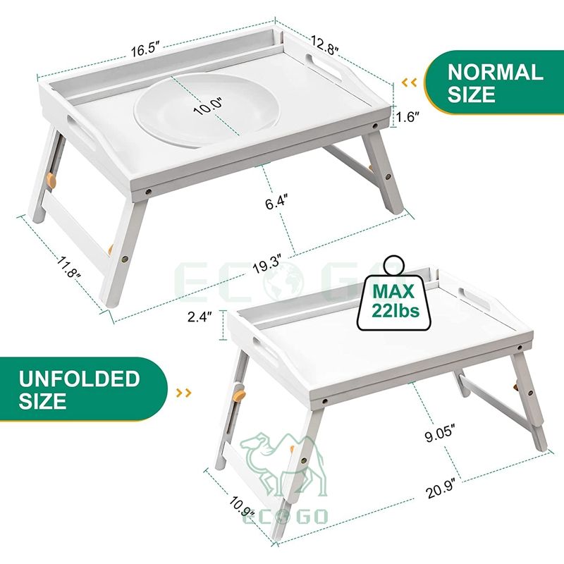 Hot Sale Wooden Bamboo Bed Tray Table Home Furniture Bamboo Bed Tray Breakfast Serving Tray With Folding Legs Portable White