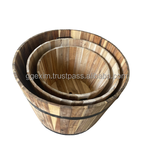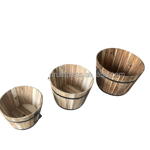 Hot Sale Large Wooden Half Barrel Planter Outdoor and Indoor Home Garden Flower Pot Quality Wood Whisky Barrel Planter