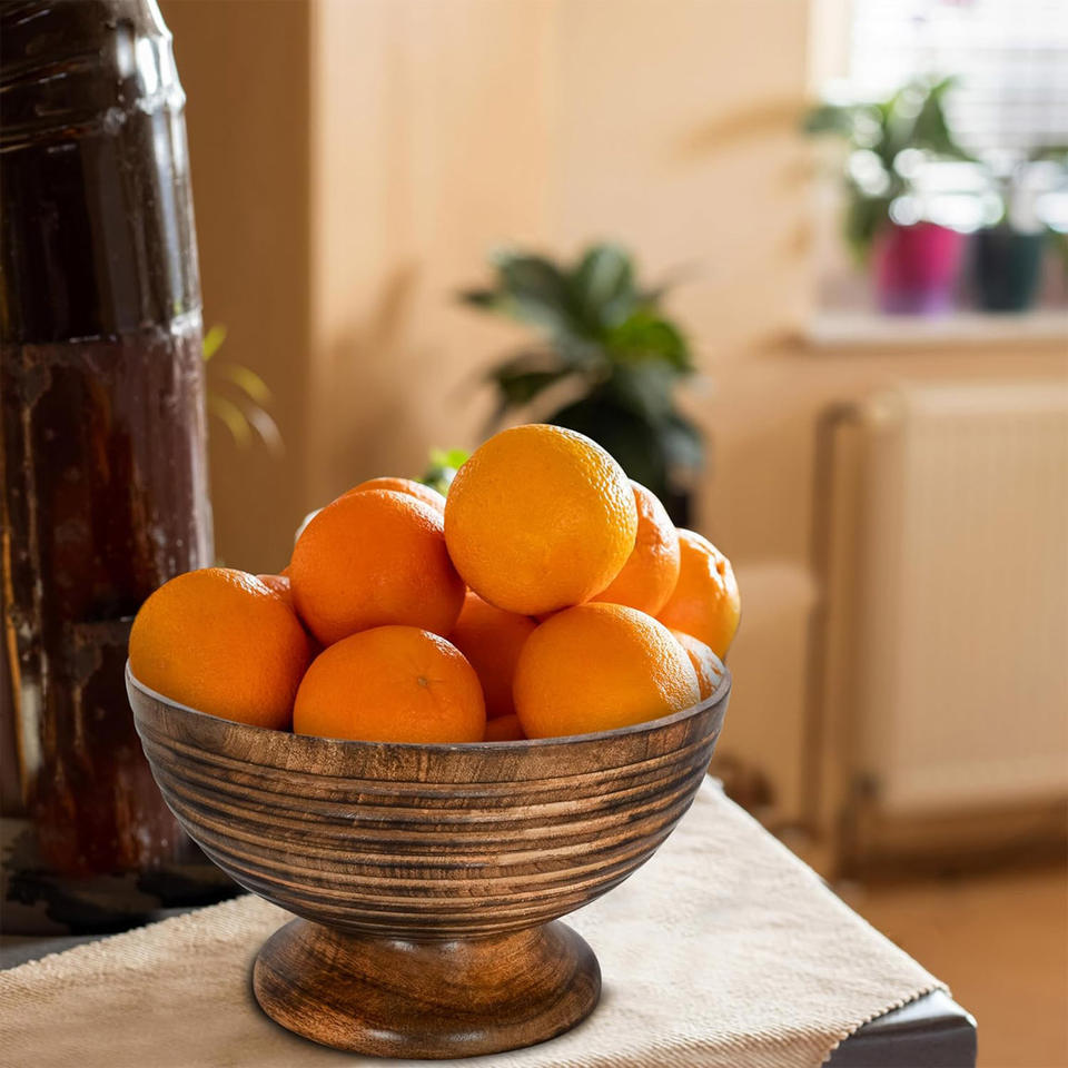 Hot Sale Wooden Pedestal Bowl Hand Carved Mango Wood Ring Bowls Dining Table Decor & Kitchen Tabletop Centerpiece Keepsake Bowl