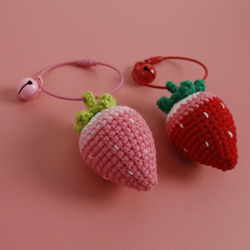 Hot Sale Woven Eco-Friendly Crochet Strawberry Bell Plush Durable Carabiner Keychain Custom Colors Cute Bag Pendant for Girls