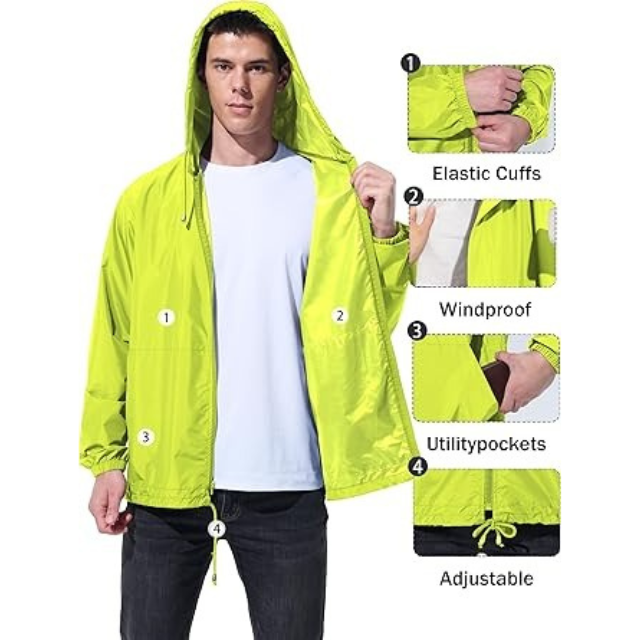 Hot Sales 2024 Men's Lightweight Packable Rain Shell Jacket Raincoat With Hood for Golf Cycling Windbreaker