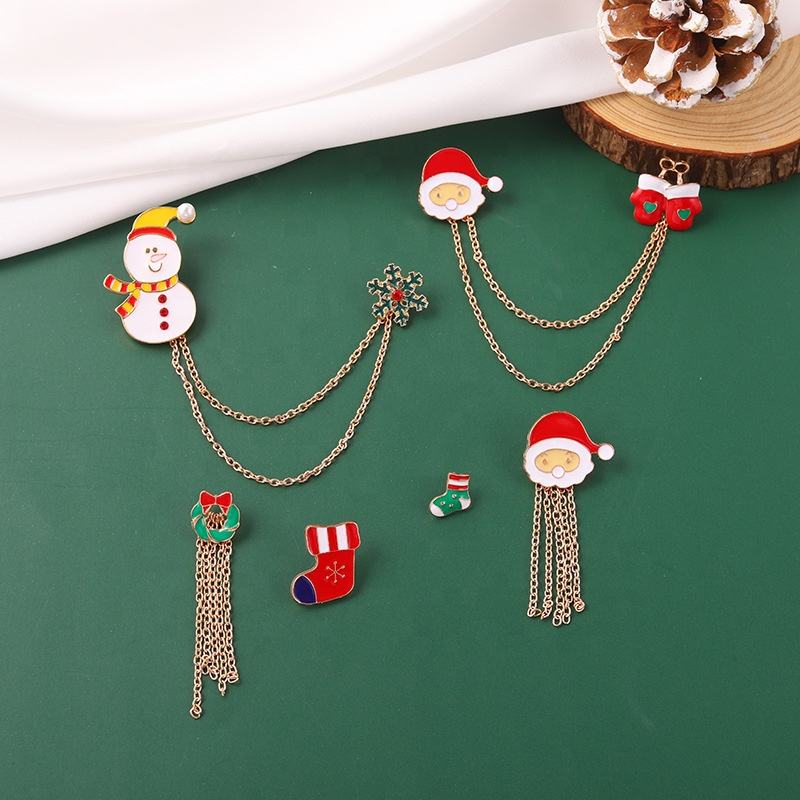 Hot Sales Creative Cartoon Santa Claus Christmas Tree Snowflake Shape Paint Alloy Badge Brooch Wholesale