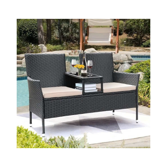 Hot Sales Custom Color Benchlove Chair Wicker Cushion 5cm/230G Rattan Bench Chair Professional Supplier Phu Linh Restaurant Sets