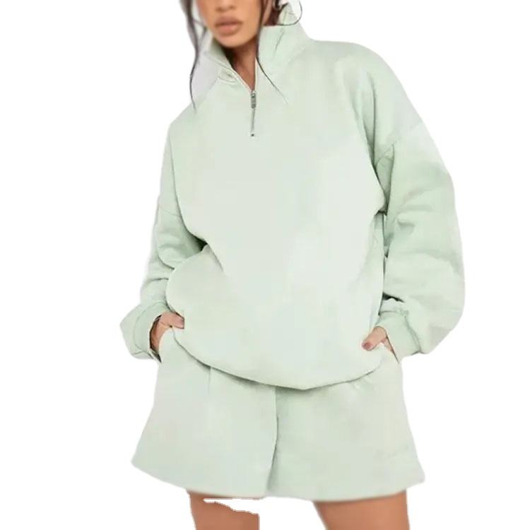 Hot Sales Custom Logo Towel Embroidery Rivet Women's Cropped Long Sleeve 14 Zip Eco-Friendly Spandex/Cotton Hoodies Sweatshirts