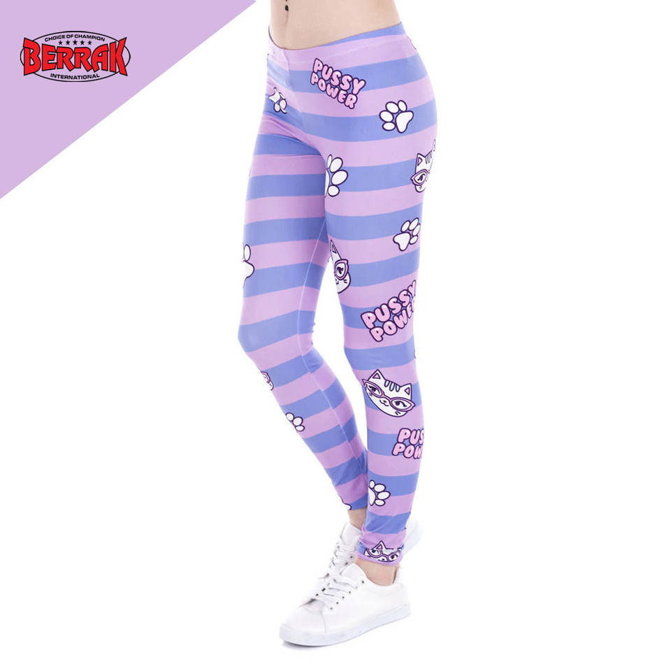 Hot Sales Fashion Women Leggings Pusy Power Pink Stripes Printing Cats Fitness Legging High Waist Stretch Woman Pants