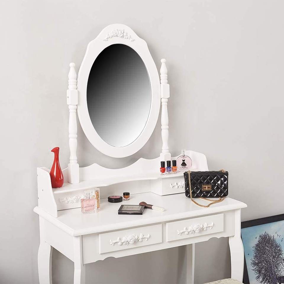 Hot Sales Furniture Wooden Makeup Dresser Girl Portable White Folding Vanity Dressing Table With Mirror and Drawers for Bedroom