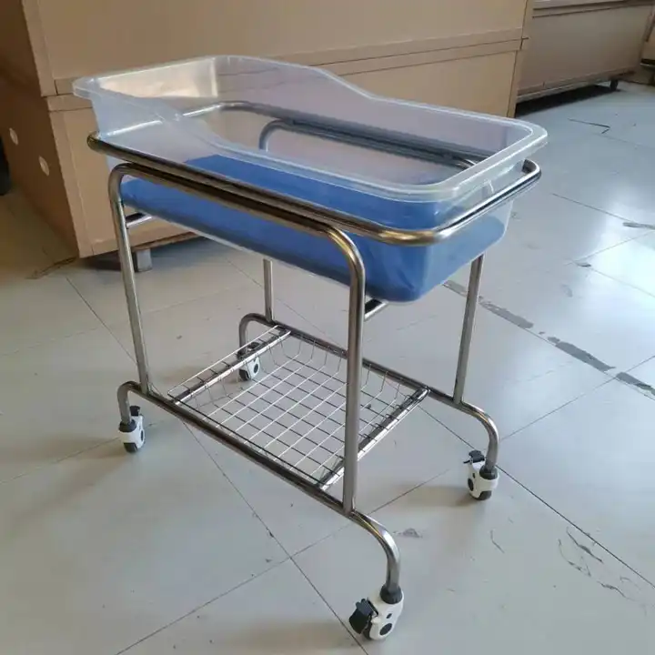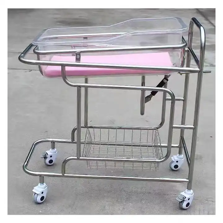 Hot Sales High-end Quality Stainless Steel Crib pink Blue Baby Bed for Hospital Baby Stroller With ABS Cradle and Matress