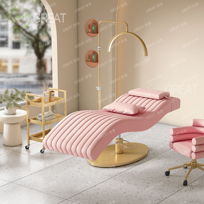 Hot Sales Modern Luxury White and pink Borders Beauty Salon Massage Table Cosmetic Facial Spa Bed Reclining Eyelash Lash Bed