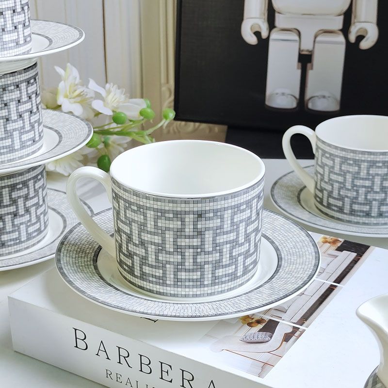 Hot Sell 15 Pcs Royal Gray Ceramic Coffee Tea Sets Western Mosaic Kitchen Accessories 200ml Porcelain Coffe Cup Wholesale Arab