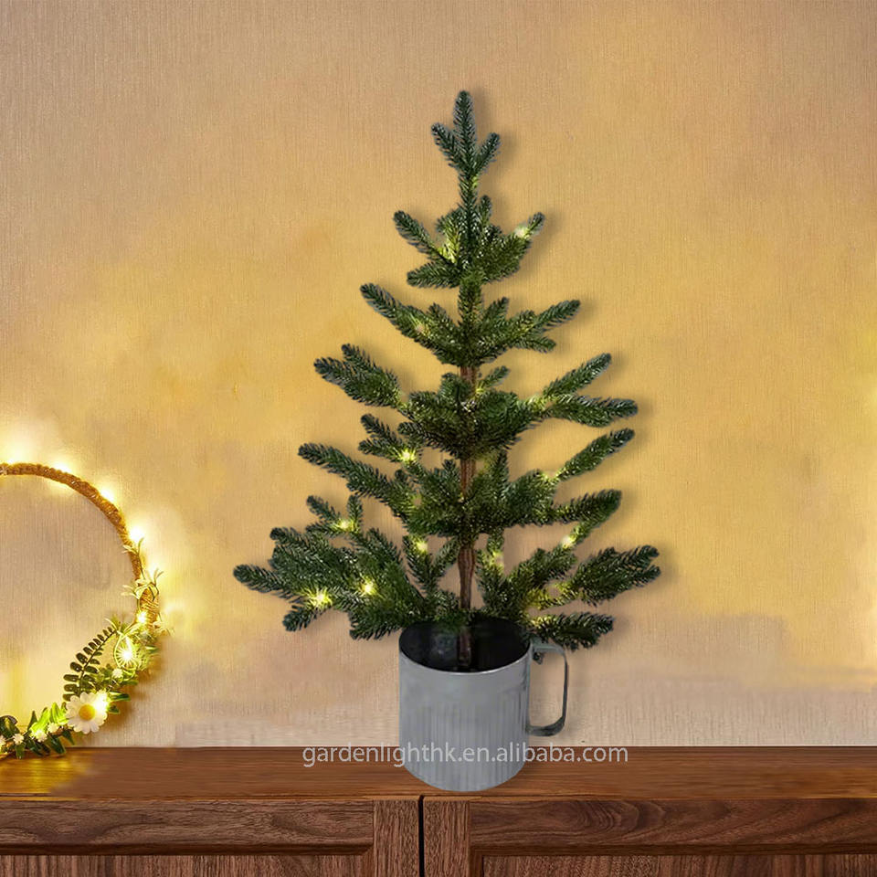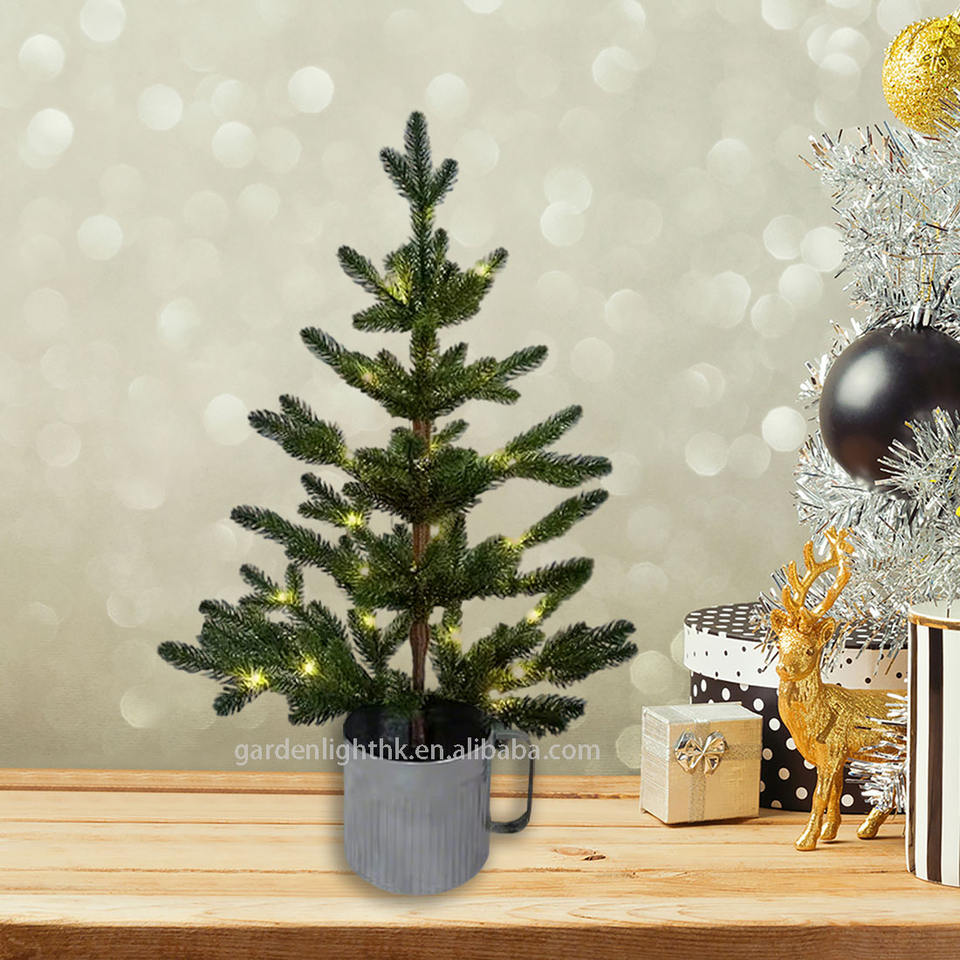 Name:24inch Green PE Potted Christmas Tree with Metal Cup Base