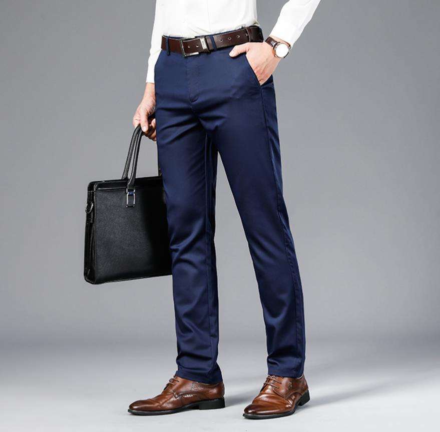 Hot Sell Business High Waist Suit Pants Men's Loose Straight Elastic Breathable Casual Pants