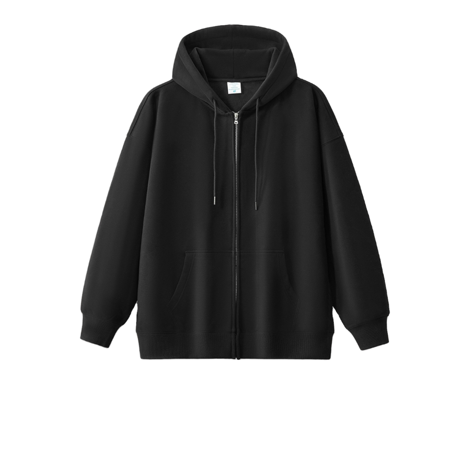 Hot Sell Custom Men's Unisex Zippered Hoodie Wholesale Oversized Drop Shoulder Winter Heavyweight Sweatshirt 3D Embroidery Solid