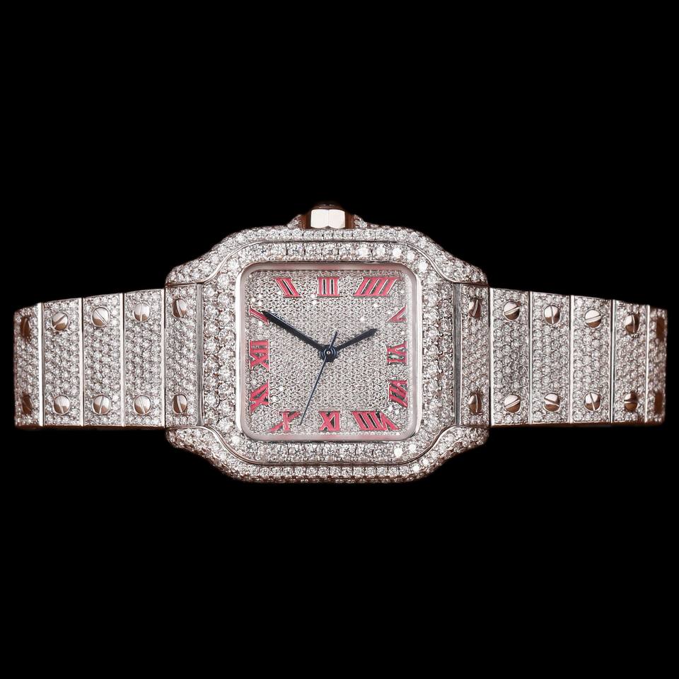 Hot Sell Custom Moissanite Diamond Luxury Square Antique Quartz Watch Movement Stainless Steel Watch Man's Fine Jewelry