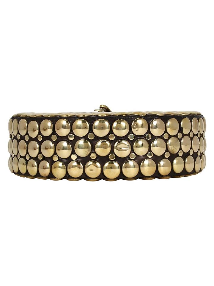 Hot Sell Designer Round Shape Metal Mosaic Clutch Bag Gold Studded One Compartment Detachable Metal Strap