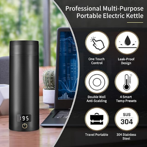 Hot Sell Electric Portable Travel Kettle Fast Boiling Hot Water Boiler 4-Level Temperature Control Stainless Steel Design Logo