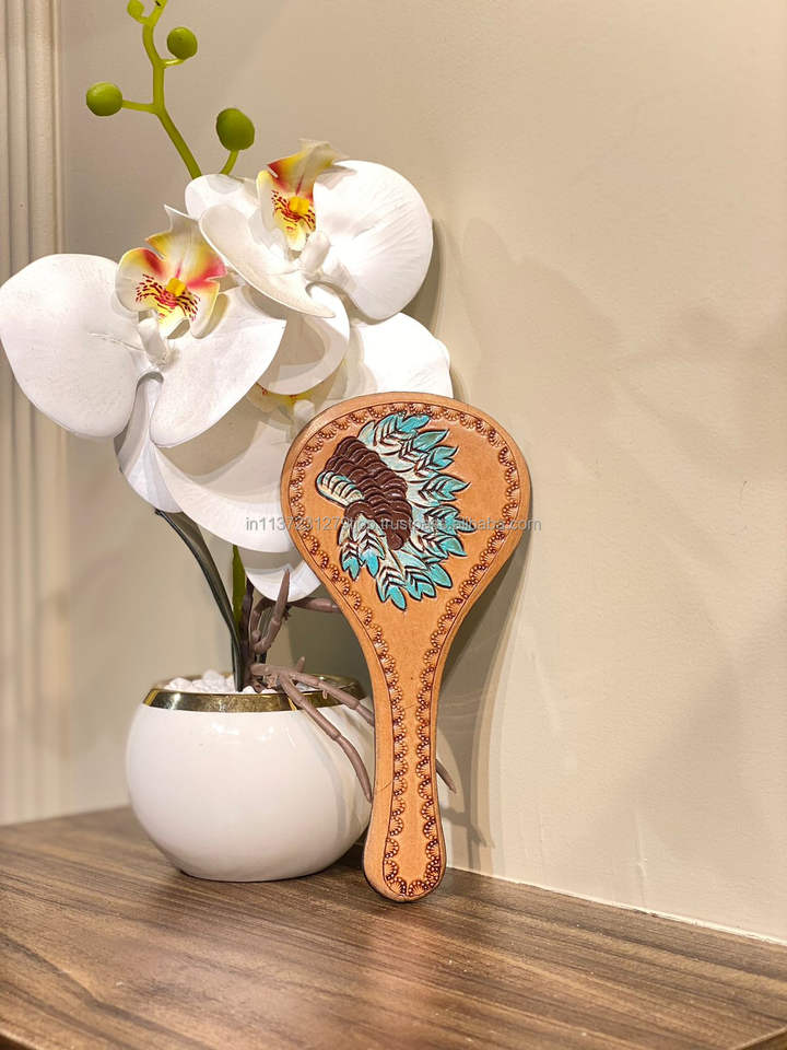 Type:Classic Vintage Tooled Leather Handheld Mirror