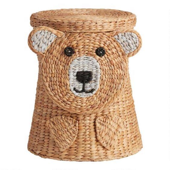 Hot Selling Natural Hyacinth Bear Buddy Basket with Lid Wicker Handicraft Multipurpose Storage Basket OEM in Vietnam Factory