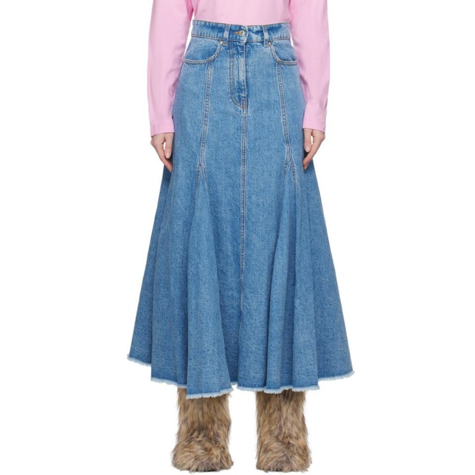 Hot Sell Pleated Raw Edge at Flared Hem Non-stretch Cotton & Hemp-blend Denim Long Skirts Women Sexy