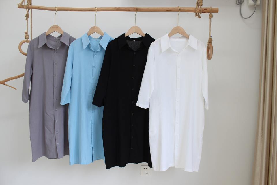 Hot Sell Summer Women's Casual Long Sleeve V-Neck Cotton Linen Solid Color Digital Printing Knee-Length Dress