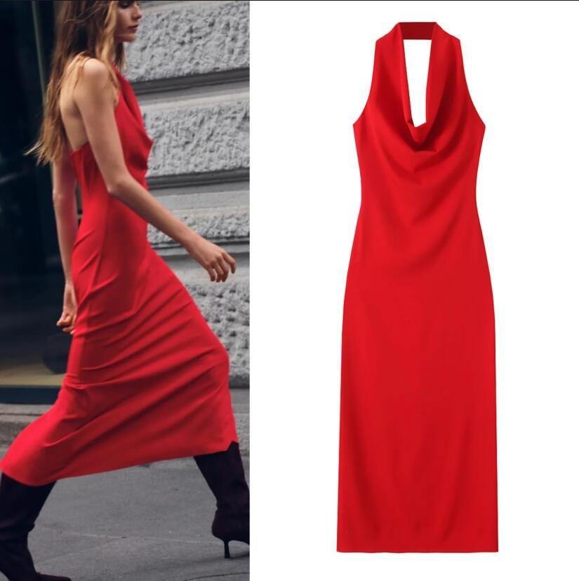 Hot Sell Women New Halter Neck Sleeveless Long Midi Dress Pleated Casual Fashion Long Summer Dress