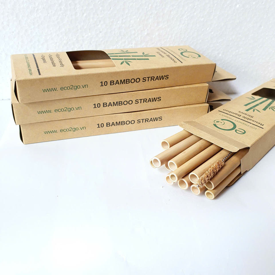 Hot Seller 2025 Bamboo Straws Drinking Set Bubble Tea Bulk With Engrave Laser Logo Made in Eco2go Vietnam