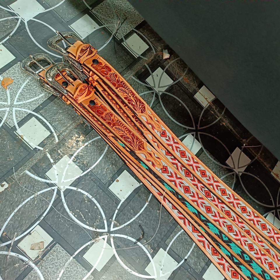 Hot Seller Cow Leather Cowboy & Cowgirl Belt With Green Colored Leaves Hand Tooling Rodeo International Customization Available
