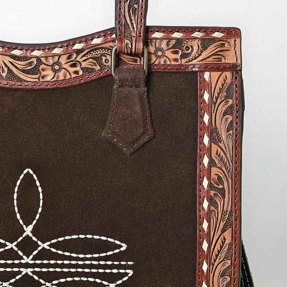 Hot Seller Genuine Leather Bohemian Zipper Tote Bag Men Custom Color Eco-Friendly Portable Tassel Flowers