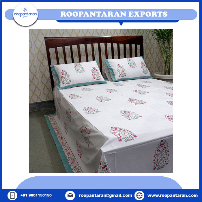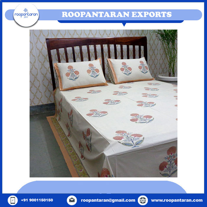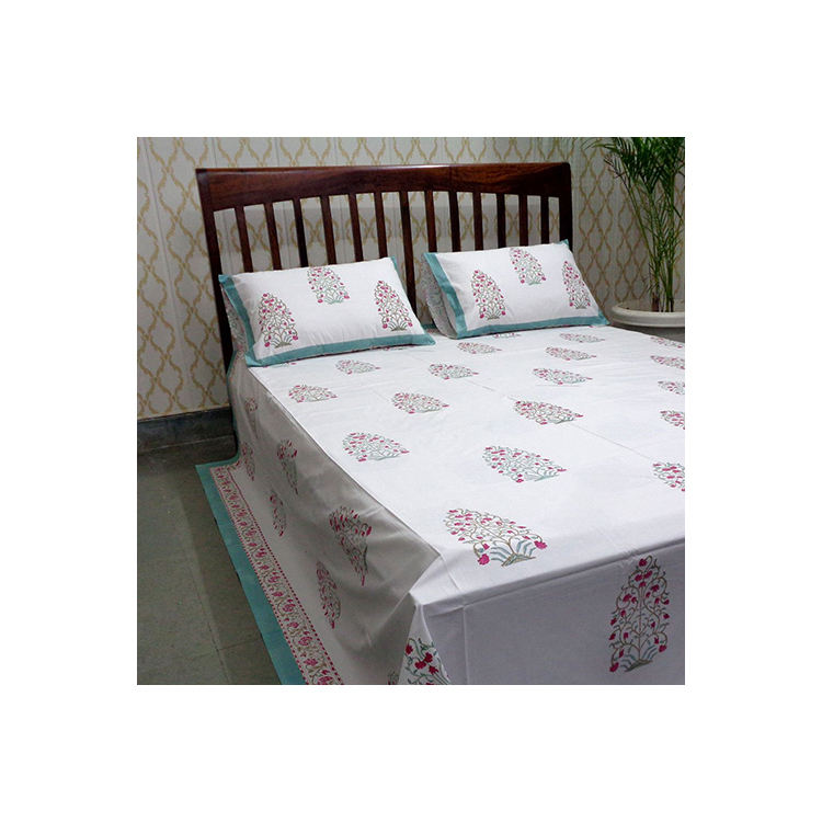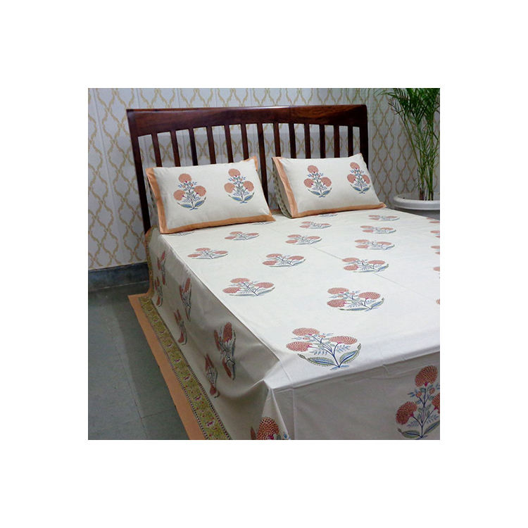 Hot Selling Factory Outlets Queen Size 100% Cotton Bedspread Handmade Floral Block Printed Percale Well Absorbing for Home Use