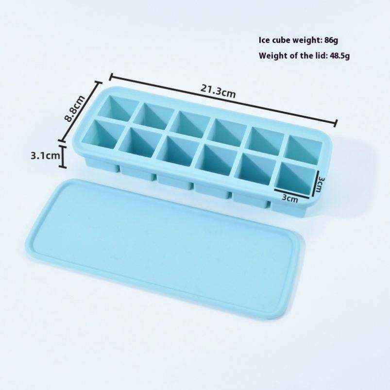Hot Selling 12-Hole Square Ice Block Mold Easy Demoulding Household Soft Bottom Food Grade Silicone for Ice Cream Tools