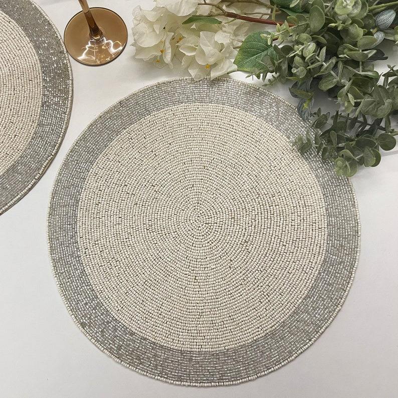 Hot Selling 14"Beaded Placemats with Custom Flower Design for Table Decoration in Christmas Party Low MOQ 50 Pcs Pink and Green