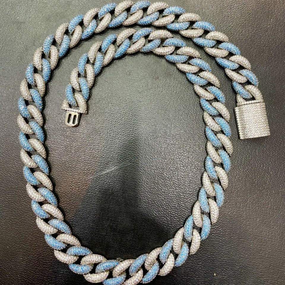 Hot Selling 14mm 925 Sterling Silver Moissanite Ready Stock Cuban Link Hip Hop Fancy Diamond Cuban Link Chain