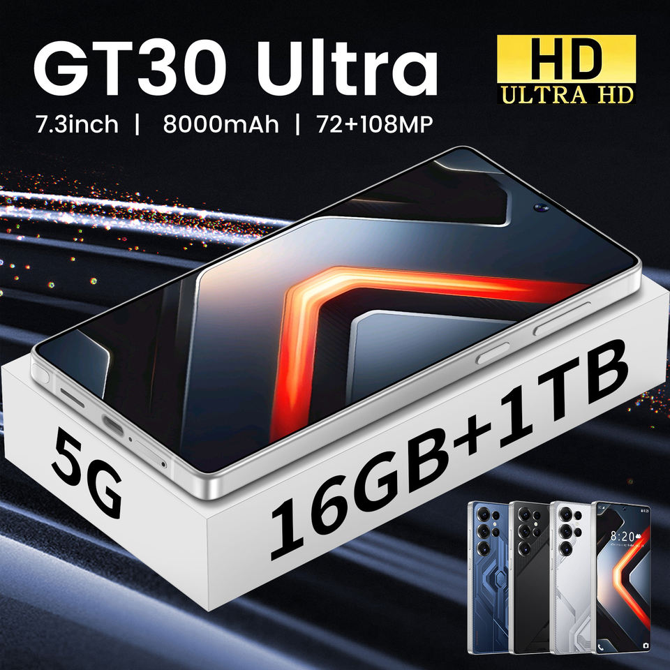 Hot Selling 16GB+1TB GT30 Ultra High Quality 5G LTE Smartphone 7.3inch HD Deca Core Android 14 Dual SIM Facial Recognition