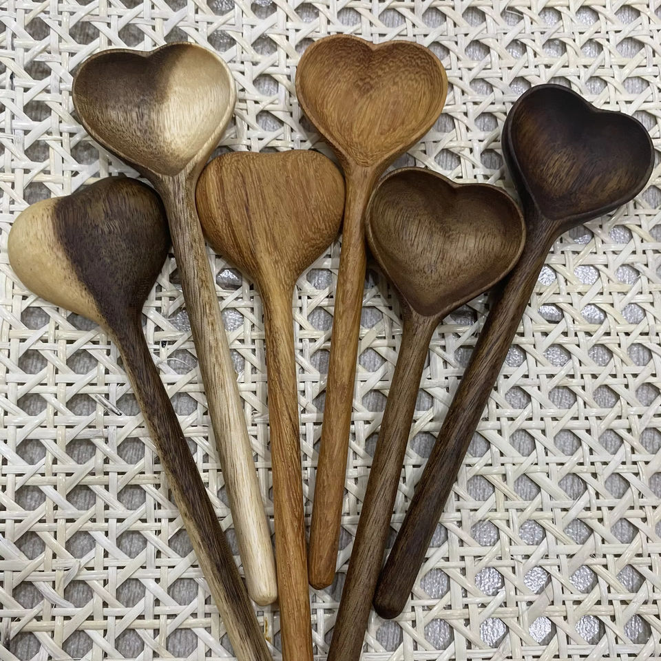 Hot Selling 16cm Length Wooden Heart Spoon/ New Design Long Handle Acacia Wooden Spoon for Tea Coffee Accessories Home Hotel