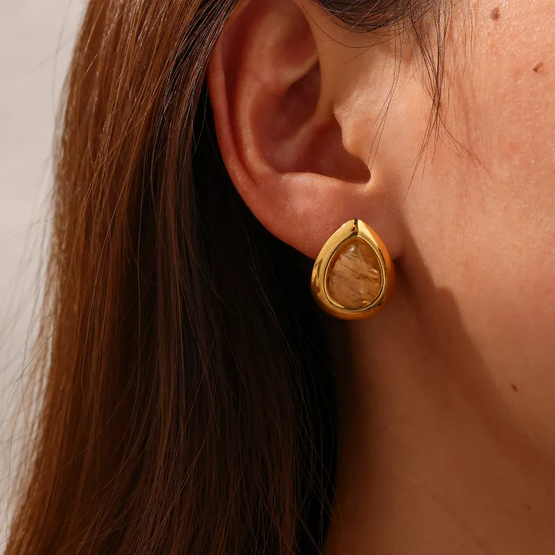 Hot Selling 18K Gold Plated 304 Stainless Steel Vacuum Electroplating Natural Stone Geometric Handmade Earrings For Women
