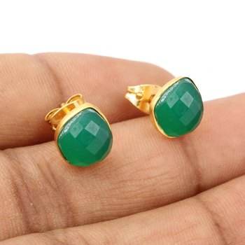 Product Name:Emerald Quartz Gemstone Sterling Silver 18k Gold Plated Stud Earring