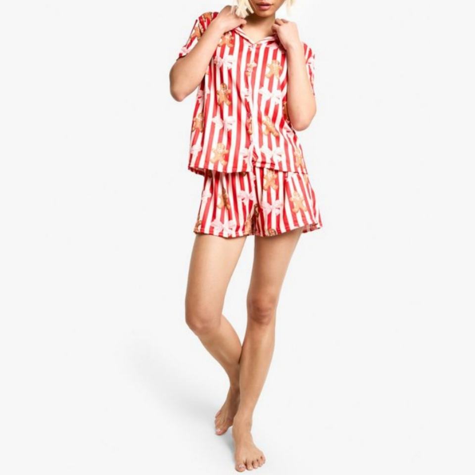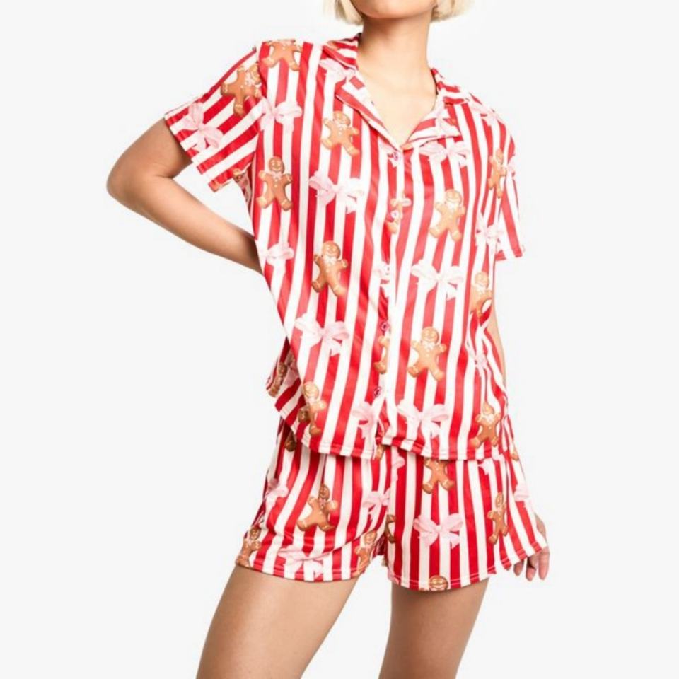 Hot Selling 2 Piece Festive Sleepwear Relaxed Fit Christmas Print Short Sleeve Top & Shorts Pyjama Set