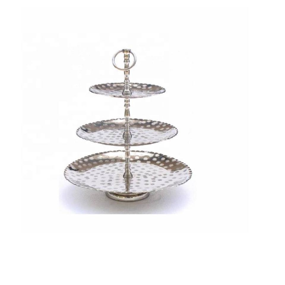 Hot Selling 2 Tier Cast Aluminium Cake Stand Nickel Plated Aluminium Fruit Stand Stands Cake Tools From India in Wholesale Price