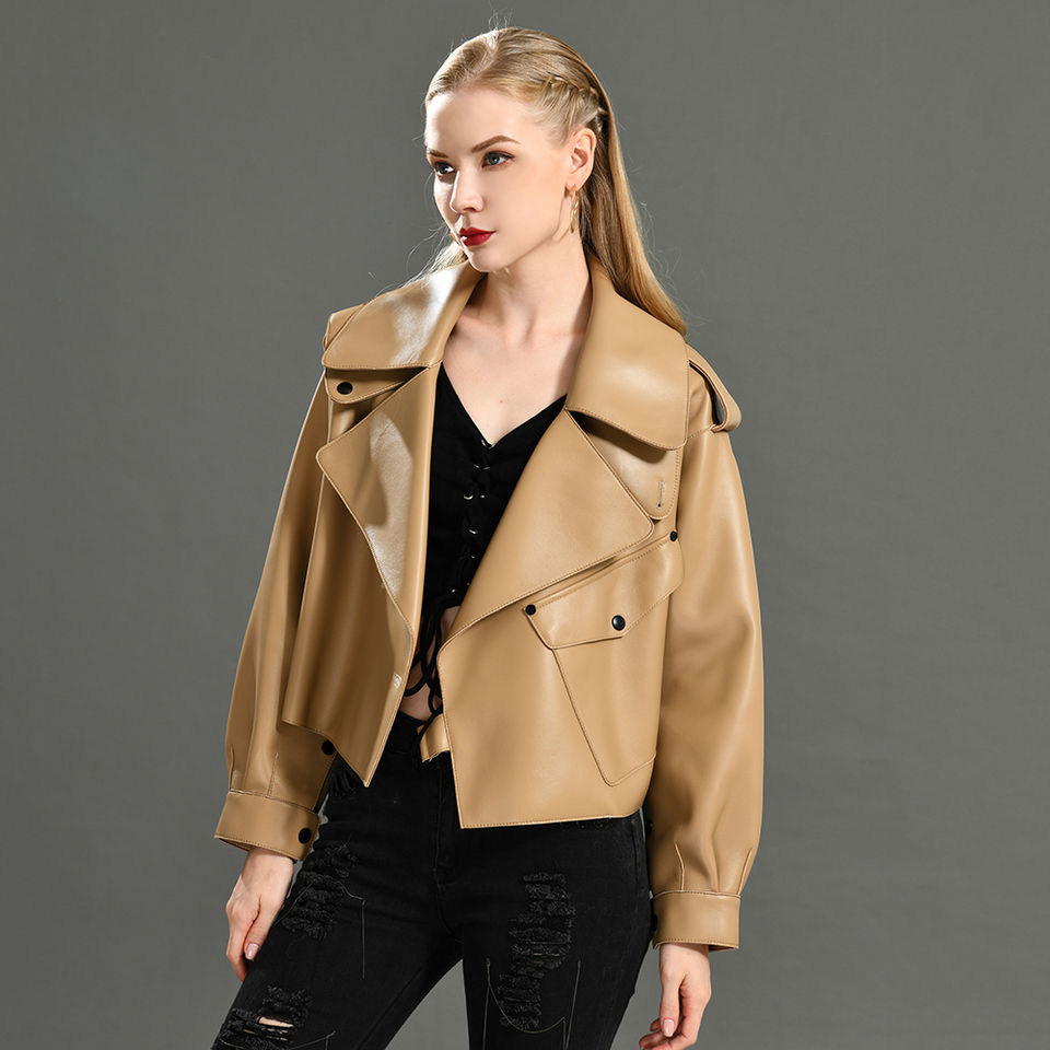 Hot Selling 2025 Leather Genuine Sheep Leather Biker Jacket Women Wholesale Italian Style Crop Trench Leather Coats