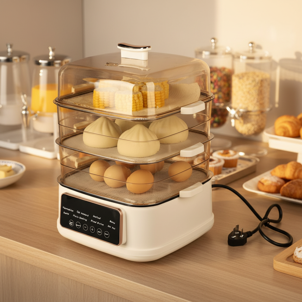 Hot Selling 3-Layer Electric Digital Food Steamer 23L Capacity Energy Efficient Class PP Plastic Housing Safety Auto-Off 1000W