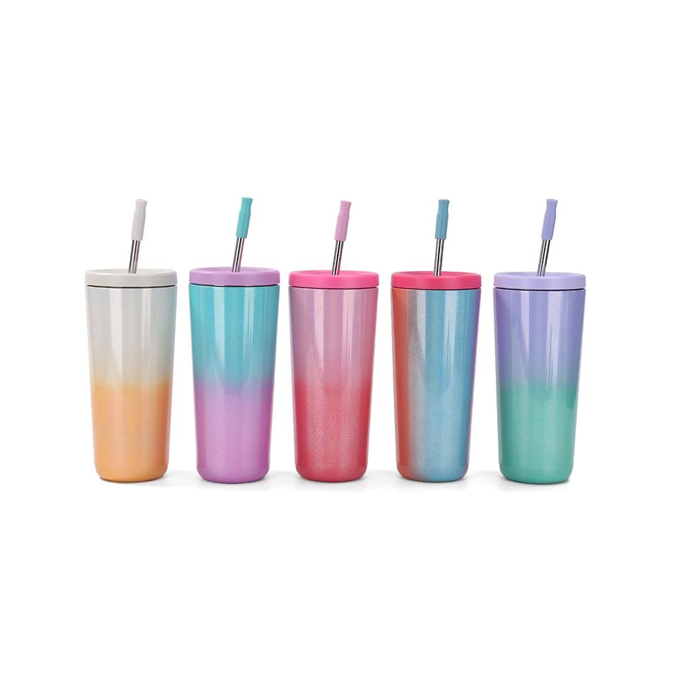 Hot Selling 304 Stainless Steel Vacuum Thermos Cup High Color Value Portable Coffee Cup Drop-Proof Straw for Travel Household