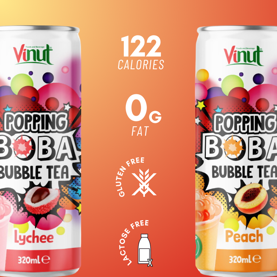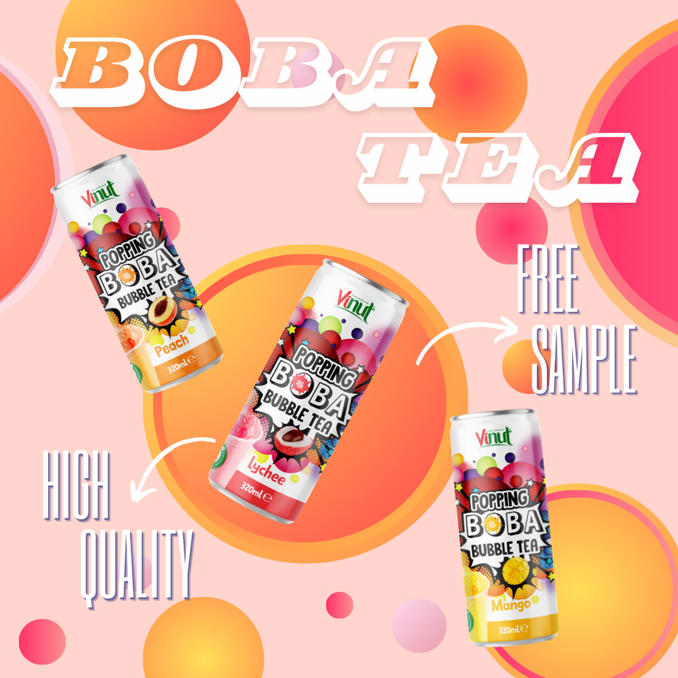 Hot Selling 320ml YOUR BRAND Popping Boba Bubble Tea Lychee Soft Drink Free Sample, Manufacture Vietnam Private Label (OEM, ODM)