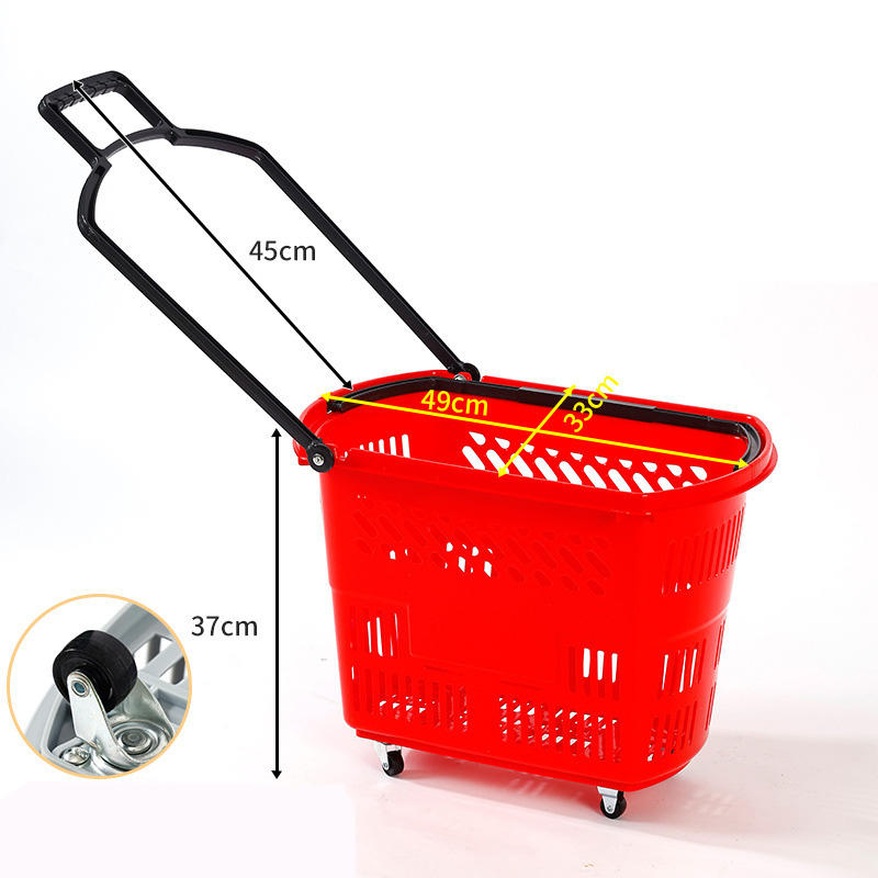 Hot Selling 35L Portable Plastic Folding Grocery Cart 4 Wheels Handle Custom Color Shopping Laundry Basket Save Space Easy Carry