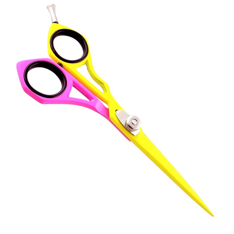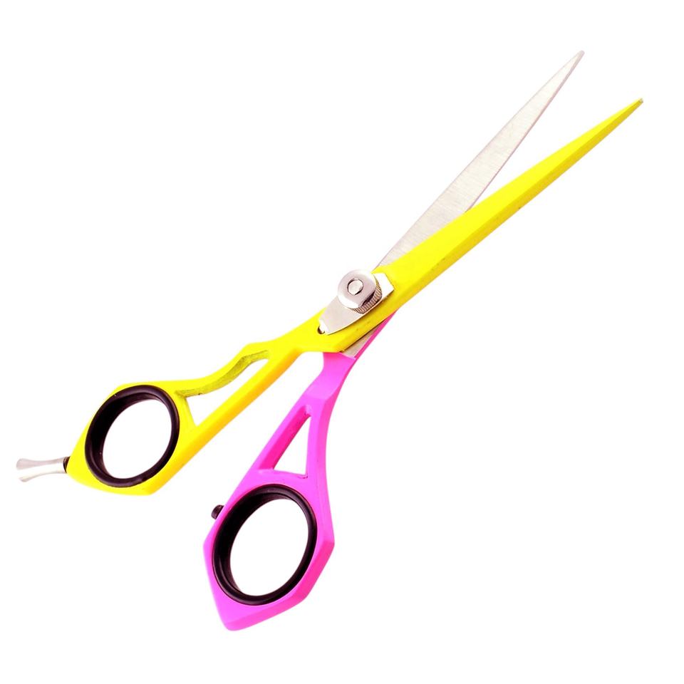 Hot Selling 6.0 Inch Barber Hair Cutting Scissor Set Hairdressing Shears Right-Handed Blunt Tip Custom Pink Yellow Handle
