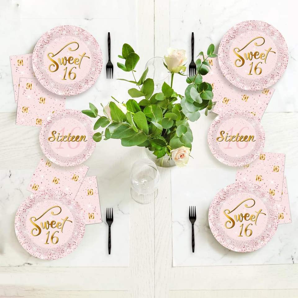 Hot Selling 7 Inch Modern Style Disposable Rose Gold Foil Plate Marvellous Quality 16 Birthday Supplies Sweet Theme Paper Food
