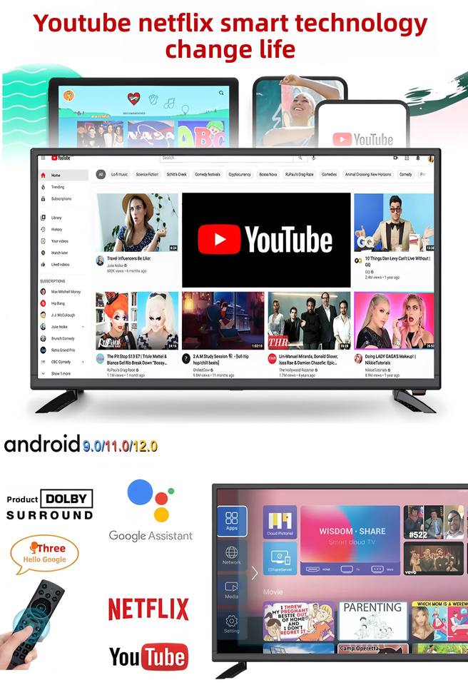 Hot Selling 85 Inch 4K UHD QLED HDR Smart TV Wi-Fi Black Cabinet Android 14 A+ Grade Panel 60Hz