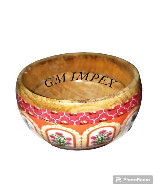 Hot Selling 9.5 Inch round Acacia Wood Craft Serving Bowl Handmade Wooden Salad & Fruit Bowls Engraving GM Impex Product Line