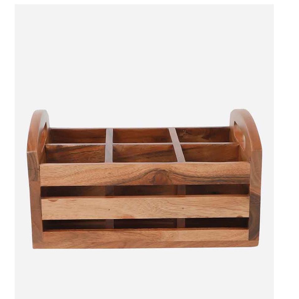 Hot Selling 9.8x3x4 Inch Wooden Cutlery Holder with 3 Boxes Print Cheap Price Kitchen Utensils Storage Rack